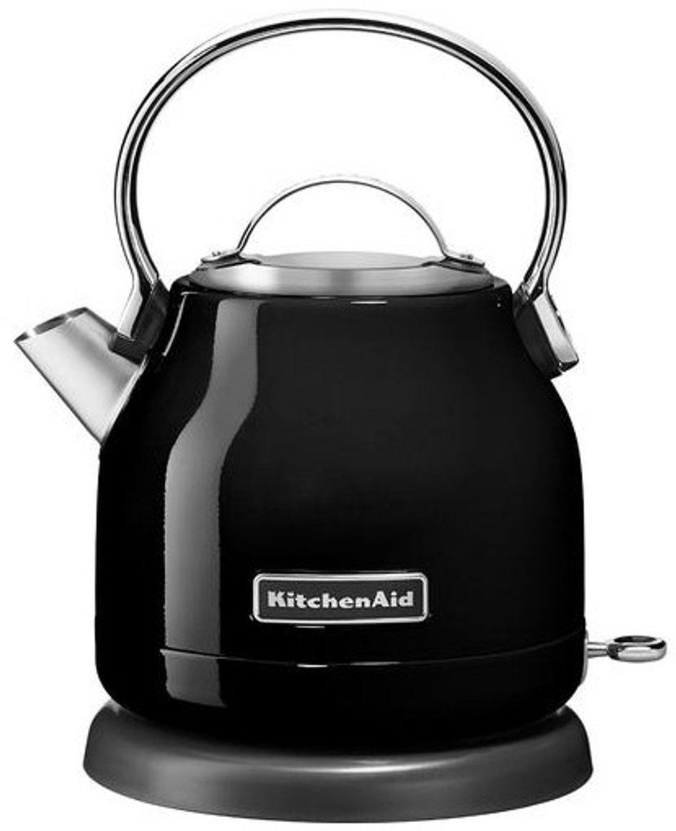 KitchenAid 5KEK1222EOB. Capaciteit watertank: 1,25 l. Vermogen: 2200 W. Kleur van het product: Zwart, Materiaal behuizing: Roestvrijstaal. Draadloos. Filtratie 1,25 l Zwart 2200 W Droogkookbeveiliging Anti-kalkfilter Verborgen verwarmingselement Voet met draaihoek van 360 graden Automatisch uitschakelen Draadloos Snoeropslag Materiaal behuizing: Roestvrijstaal lees meer over dit product