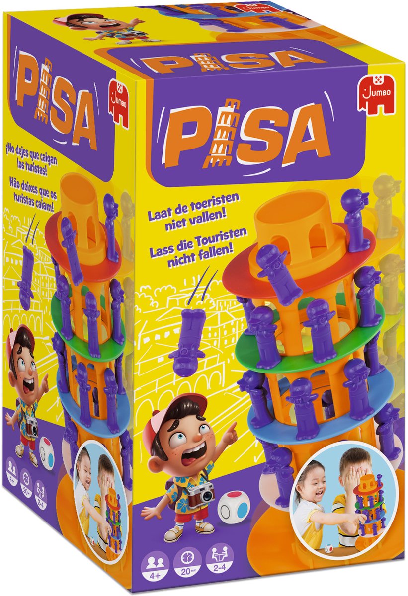 De toren van Pisa is een super spannend spel! Durf jij de toeristen op de wankele toren van Pisa te plaatsen? Gooi de dobbelsteen om te bepalen waar de toerist op de toren moet worden gezet. Maar pas op, de toren wiebelt! Als er een toerist valt is deze voor jou. Degene die als eerste al zijn toeristen op de toren heeft gezet wint. De toren van Pisa is een razend spannend actiespel waar je nooit genoeg van krijgt! Inhoud: ... lees meer over dit product