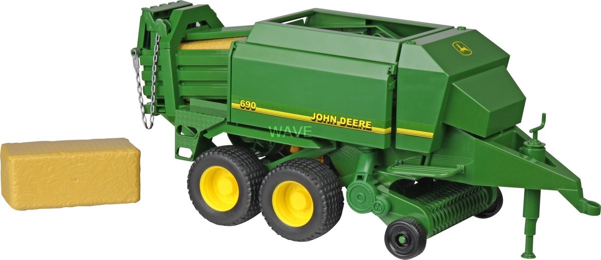 Met de John Deere 690 Balenpers verzamel je snel alle hooi van het land en worden er mooie hooibalen van gemaakt. Via het plateau aan de achterzijde van de wagen worden de balen afgevoerd. De John Deere 690 Balenpers is compatible met alle Bruder tractoren. lees meer over dit product