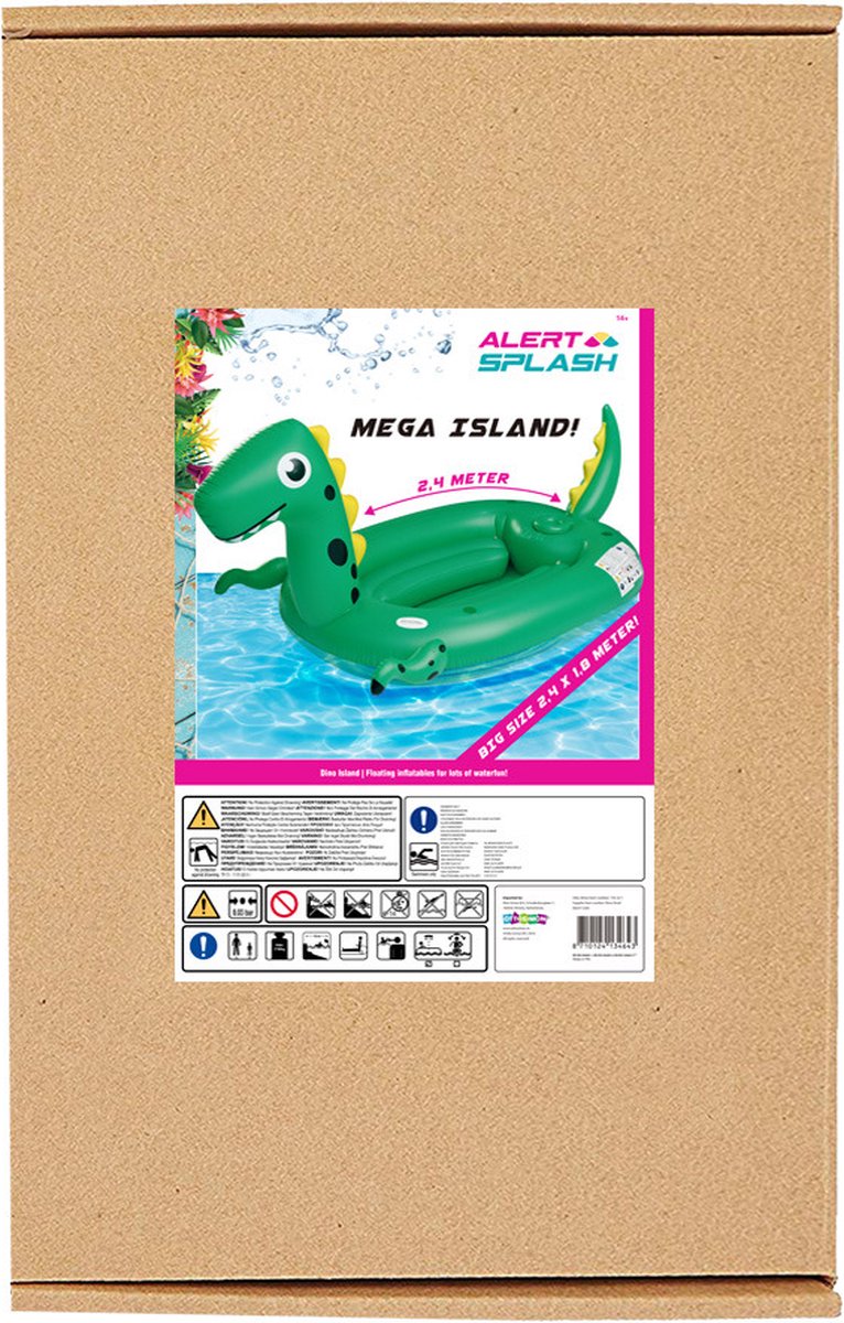Alert Splash Opblaaseiland Dino Met dit dino eiland kunnen kinderen heerlijk relaxen op het water. De dino is opblaasbaar en er zitten twee bankjes in. Er zitten 2 handvaten aan om hem makkelijk in en uit het water te halen, ook is er plek voor een koeltas of koelbox en om een beker in de bekerhouder te zetten. Het dino eiland is 240 x 180 cm groot. Bevat 2 bankjes en 2 handvaten Heeft ook plek voor een koelbox Het eiland he... lees meer over dit product