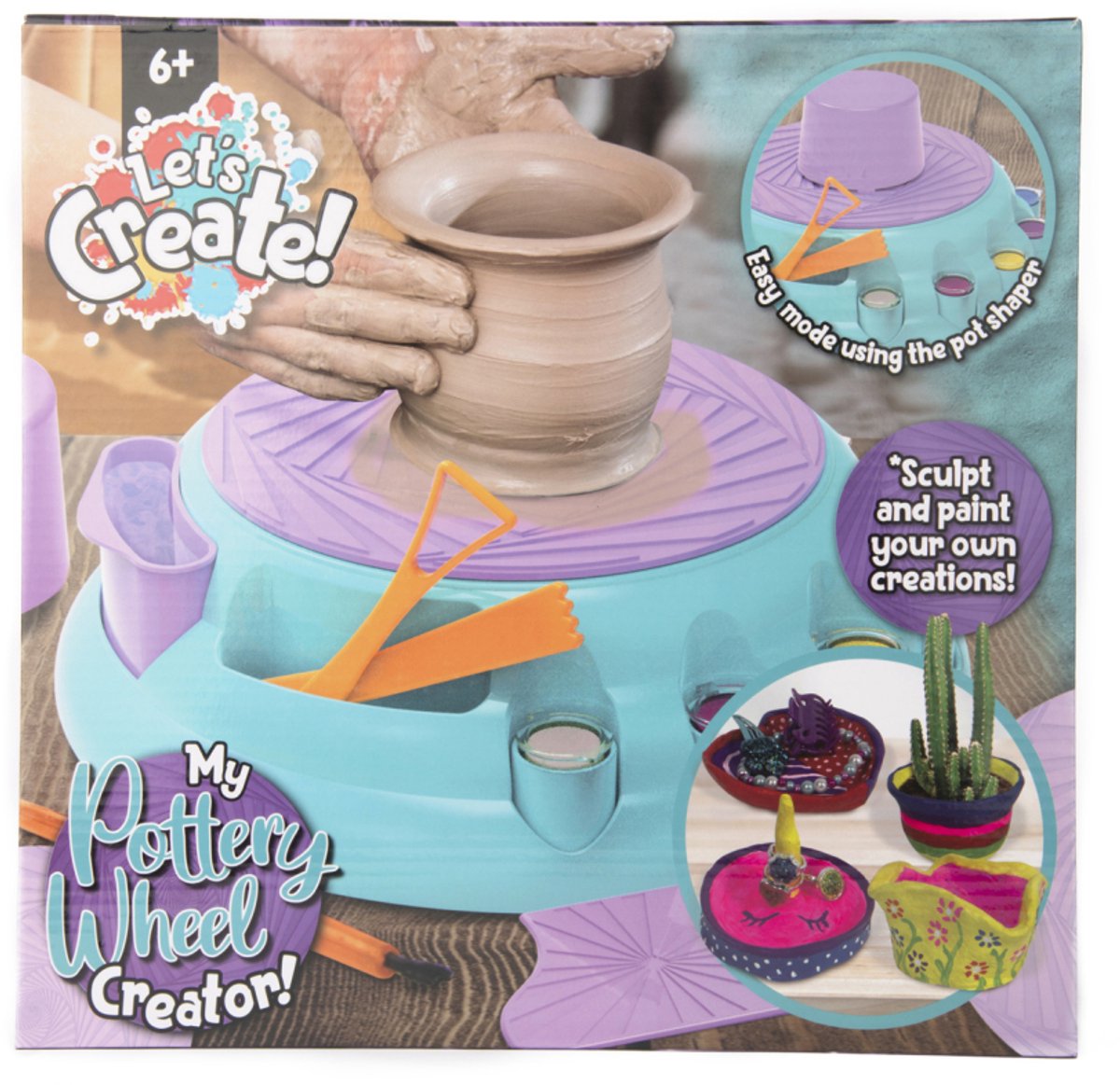 Let's Create!pottenbakkerset Dit is een eenvoudige maar complete pottenbakkerset met draaiwiel. Met de verschillende hulpmiddelen kun je de mooiste potten maken. De set heeft tevens een extra stand waarmee het makkelijke wordt om potten te maken. Geschikt voor kinderen vanaf 6 jaar. lees meer over dit product