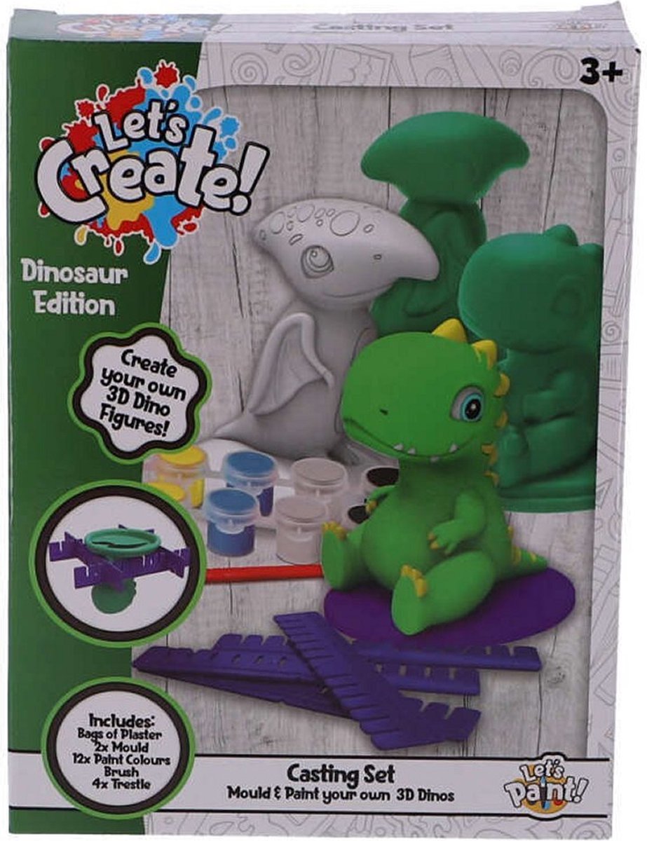 Lets Greate! gipsgieten dino Luxe werkstation om zelf mooie dino figuren te maken en schilderen. De set bevat alles wat je nodig hebt om direct aan de slag te gaan. Zakjes gips 2 mallen 12 kleuren verf Verfkwast 4 houders Geschikt voor kinderen vanaf 3 jaar lees meer over dit product