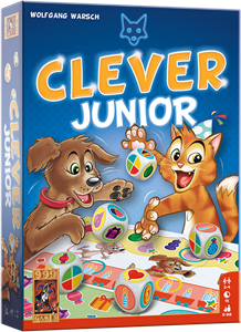 Speel nu Clever met de kleintjes! Rol met de dobbelstenen, kies alles van dezelfde kleur en vul de uitkomst in op je scorevel. Je tegenspelers kunnen kiezen uit de dobbelstenen die jij laat liggen. Clever Junior is dankzij het feestelijke thema en de versimpelde regels bij uitstek geschikt voor jonge spelers. Tegelijkertijd speelt dit dobbelspel nog steeds als een echte Clever. Dobbelen maar! Net als bij het volwassen Clever moet je in Clever Junior kiezen uit de dobbelstenen die je rolt. Alle dobbelstenen met dezelfde kleur en het juiste symbool kun je op je eigen scorevel verwerken. De dobbelstenen die blijven liggen mogen door je tegenspelers worden gebruikt. Dobbelstenen met dezelfde kleur mogen in de overeenkomende categorie worden ingevuld. Hoe voller je categorie wordt, des te meer regenboogsterren je verzamelt. Ook kun je bonussen aankruisen, waarmee je extra beurten krijgt.