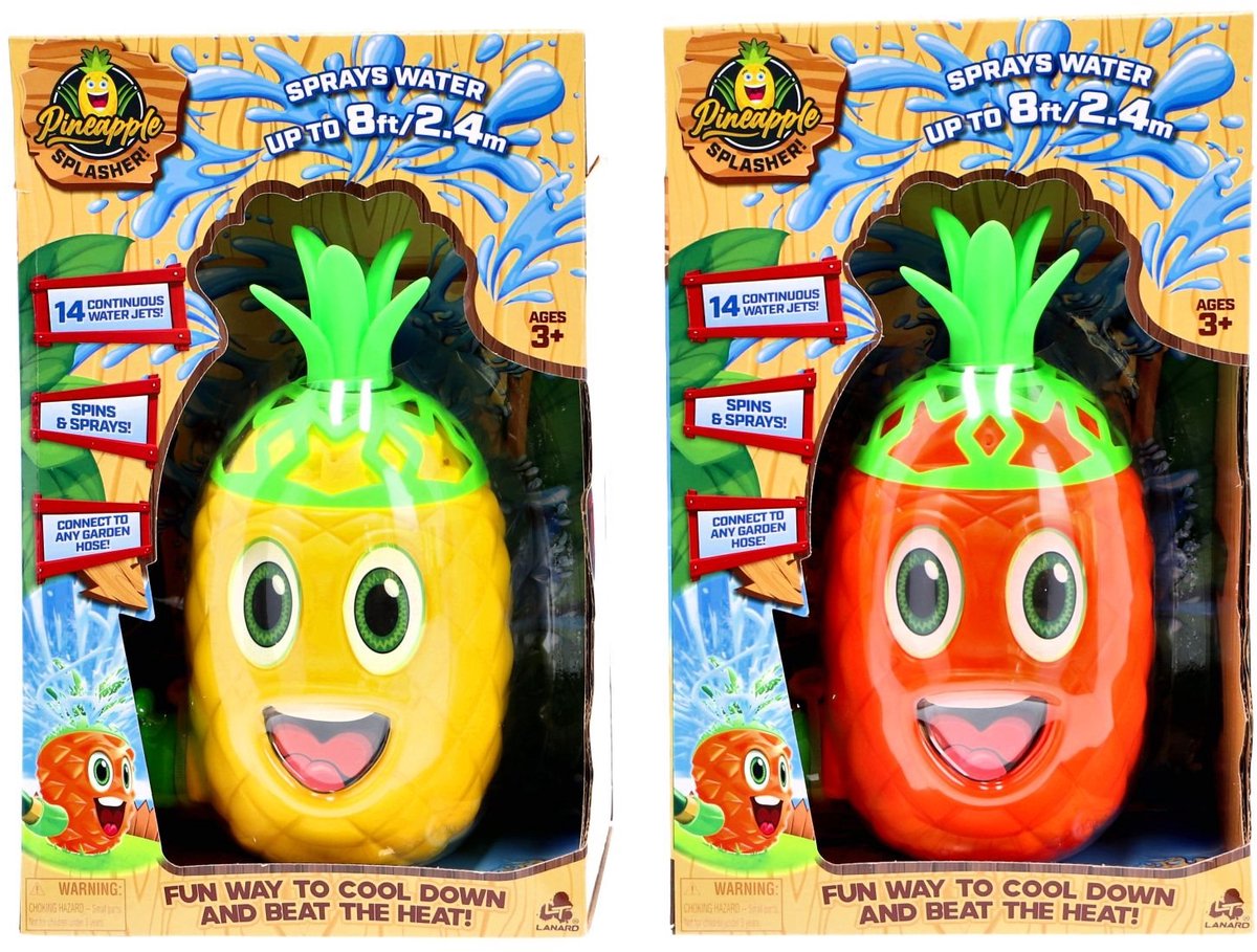 Ananas-vormige watersproeier, aan te sluiten op de tuinslang. 14 continue waterstralen met een bereik tot 2,4 meter. Geschikt voor kinderen vanaf 3 jaar.Verkrijgbaar in 2 verschillende kleuren. U kunt niet kiezen, maar ontvangt een willekeurige kleur.