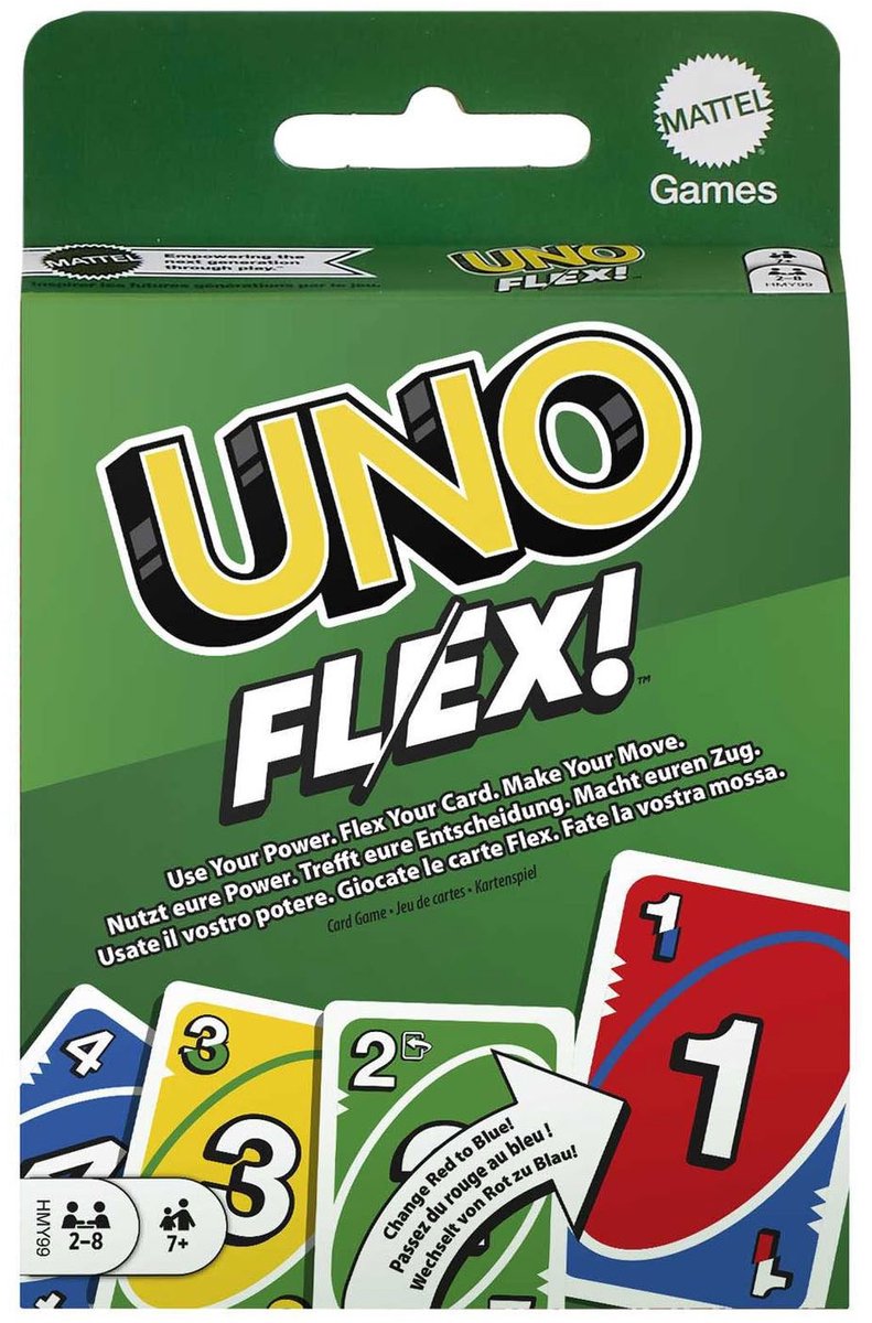 - De nieuwe UNO Flex is gebaseerd op het klassieke UNO-spel, maar met Flex-kaarten om de kaarten een andere kleur te geven.