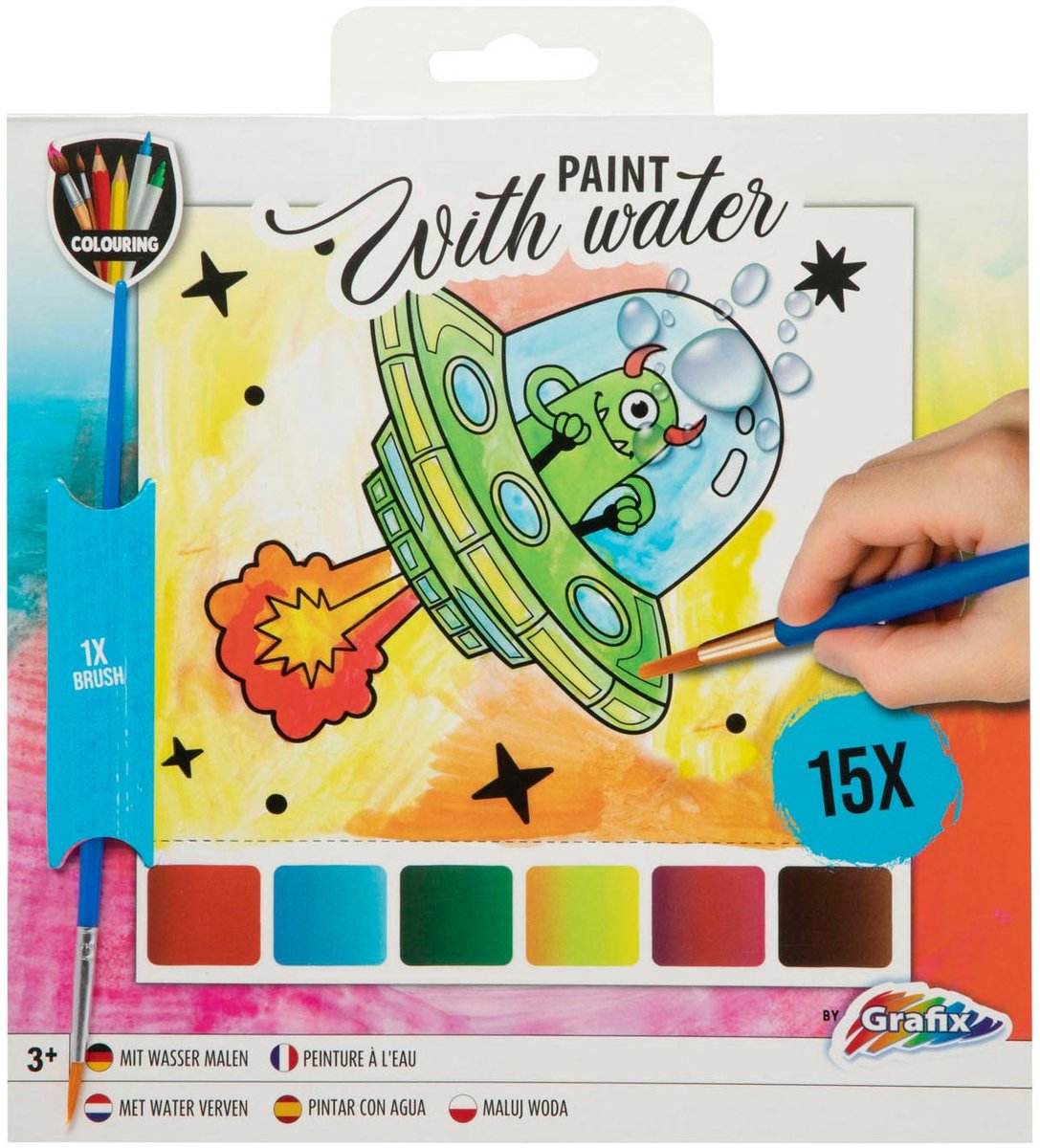 Grafix verven met water Schilderboekje waarin kunst gemaakt kan worden met gebruik van enkel water. 15 kleurplaten om te schilderen. Inclusief verfkwastje. Geschikt voor kinderen vanaf 3 jaar. lees meer over dit product