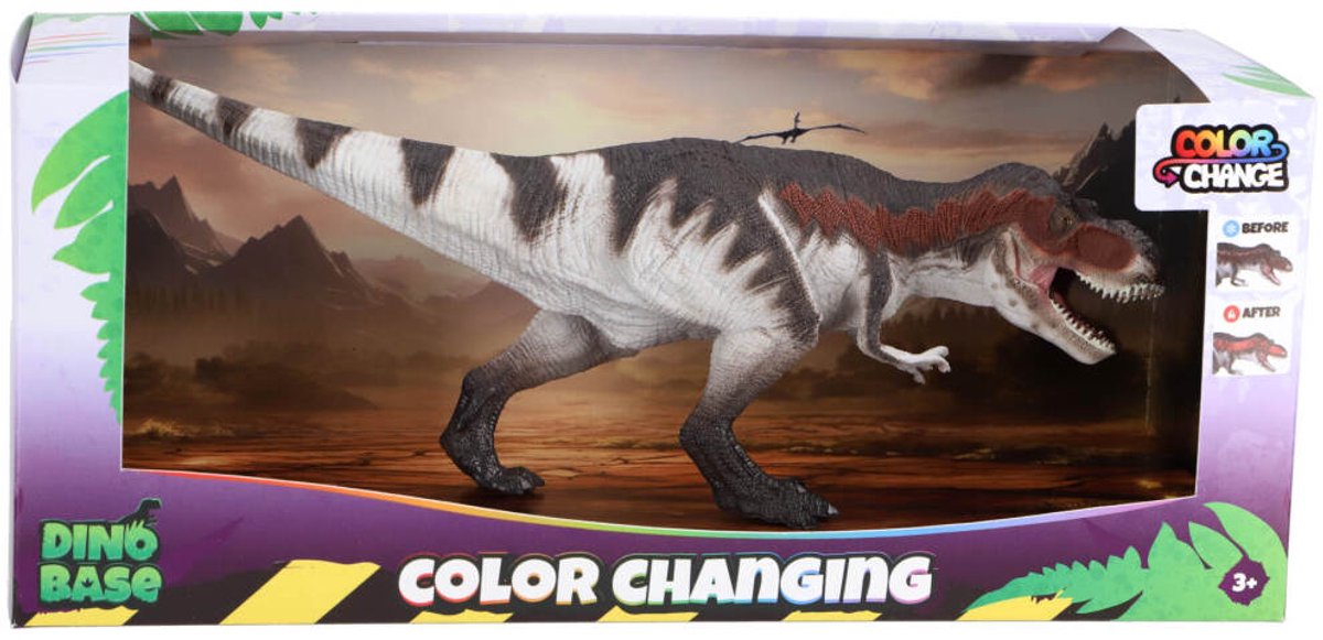 Dino Base speelgoed T-Rex kleurveranderende dino figuur multicolorMet de T-Rex kleurveranderende dino van Dino Base beleef je eindeloos speelplezier! Dit stoere dino speelfiguur verandert van kleur wanneer je hem blootstelt aan warmte of kou. Zo wordt spelen met deze dino elke keer weer een verrassend avontuur.De multicolor T-Rex is gemaakt van stevig materiaal en is geschikt voor kinderen vanaf 3 jaar. Dankzij het unieke kleurveranderende effect wordt de fantasie geprikkeld en kunnen kinderen hun eigen prehistorische verhalen bedenken. Perfect voor kleine dino-fans die houden van interactief speelgoed!Extra informatieKleurveranderende T-Rex dino figuurVerandert van kleur door warmte en kouGeschikt voor kinderen vanaf 3 jaarGemaakt van stevig materiaal in vrolijke kleuren.