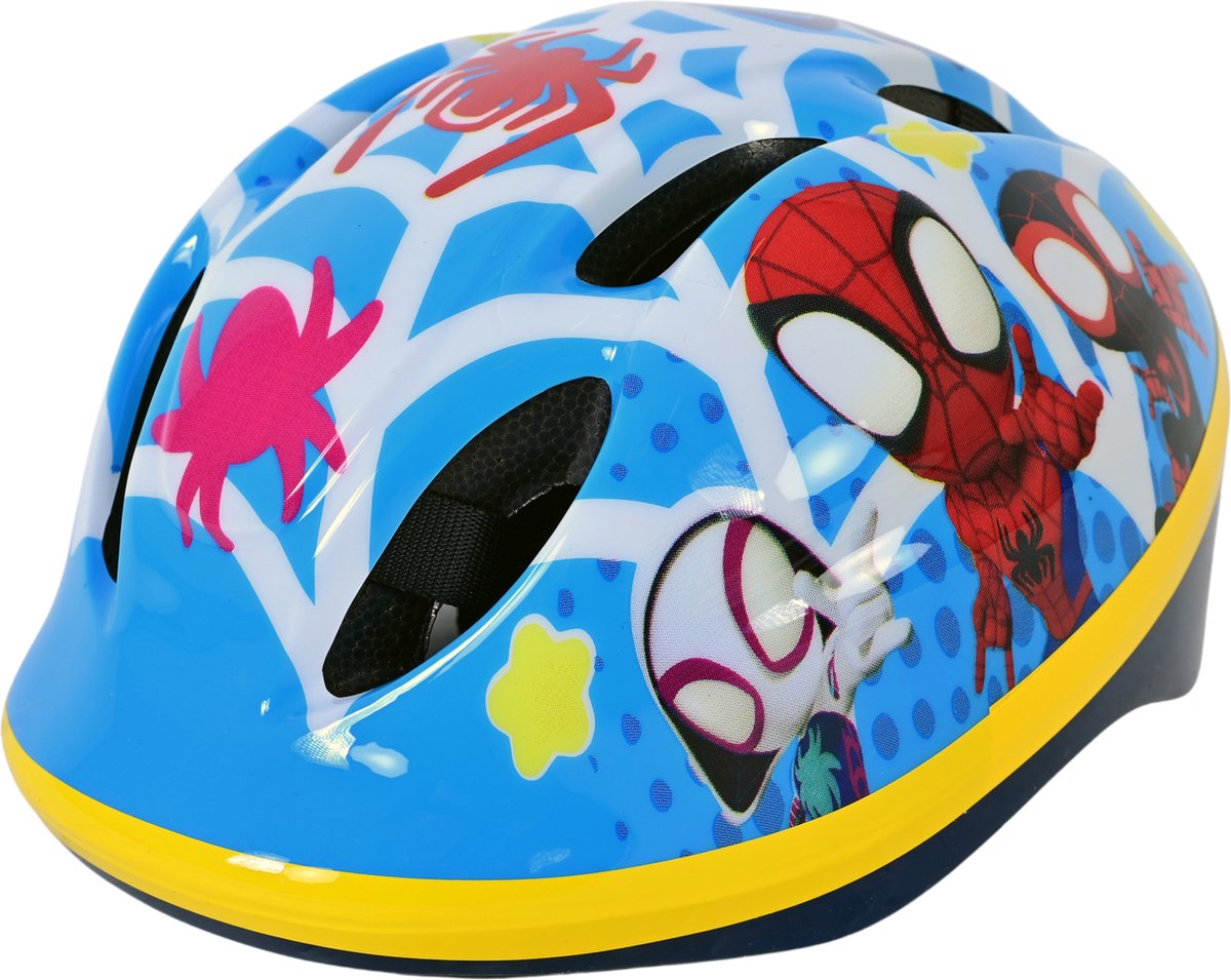 Volare Kinderfietsen beschikt over een grote collectie licentie helmen. Een daarvan is deze prachtige Spidey fietshelm. De mooie blauwe kleur en de Spidey decoraties geven de helm een perfecte uitstraling. Met de draaiknop is de hoofdomtrek van de helm verstelbaar van 52 tot 56 cm. Daarbij is de onderkant van de helm ook bedekt. De helm weegt slechts 200 gram. Dat maakt hem extra licht en dus makkelijk te dragen. De helm is naar de strengste eisen van het TÜV/GS goedgekeurd.