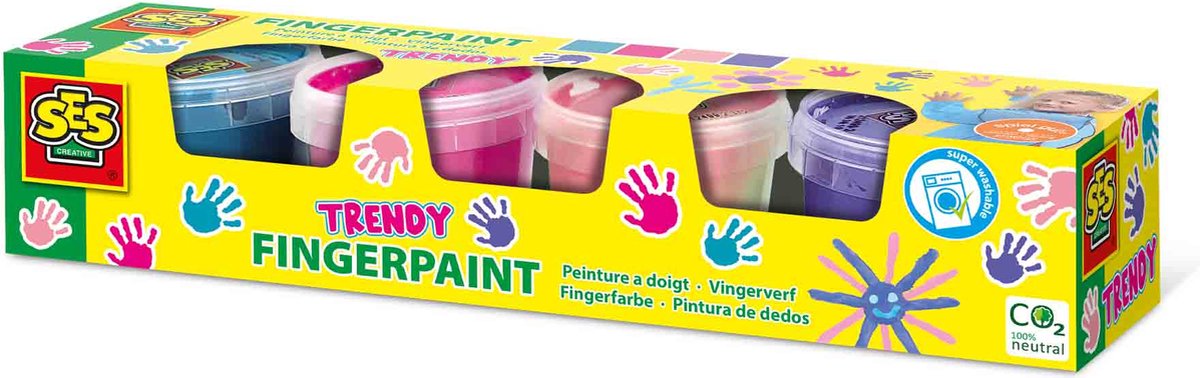 Met de Vingerverf 4 Trendy Kleuren x 110ml set van SES kunnen jonge kunstenaars hun creativiteit de vrije loop laten. Deze set bevat vier moderne kleuren vingerverf, speciaal ontwikkeld voor kleine kinderen. De verf is veilig, glutenvrij en gemakkelijk uitwasbaar, zodat kinderen zonder zorgen kunnen spelen en experimenteren met kleur.