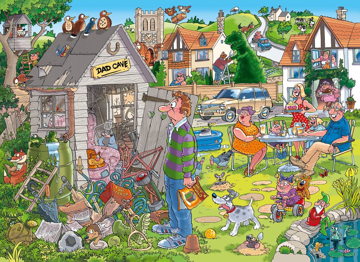 Wasgij Destiny 28 - De Mancave Van Pa! De dagen van het oude tuinhuisje zijn geteld. Papa's kleine toevluchtsoord is zo rommelig dat hij er al jaren niet meer in heeft gezeten. Het is zo volgepropt met spullen dat het uit zijn voegen barst en elke kat, muis, kikker en egel er hun intrek heeft genomen. Het is niet langer een plek om aan de drukte te ontsnappen, maar is gewoon een stortplaats geworden. Het is tijd voor een upgr... lees meer over dit product