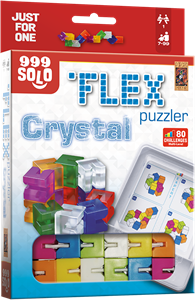 De 12 transparante blokken aan het elastiek van de FLEX puzzler Crystal kunnen in elke richting 45 of 90 graden worden gedraaid. 80 uitdagingen in 2D en 3D zorgen voor breinbrekend puzzelplezier en stimuleren ook je ruimtelijke inzicht. Daarnaast zorgt het hoge “fidget-gehalte” voor ontspanning en mindfulness. Te combineren met andere FLEX puzzlers uit deze lijn! Wie speelt er FLEX puzzler Crystal? Deze puzzel is bedoeld voor iedereen die van ruimtelijke puzzels houdt en te spelen met. De FLEX puzzler Crystal is onderdeel van de sololijn van 999 Games en daardoor uitsluitend geschikt om in je eentje te spelen. Hoe speel je FLEX puzzler Crystal? Je kiest een uitdaging uit het boekje en vouwt de puzzler dan zo dat de juiste vorm ontstaat en de juiste kleuren zichtbaar zijn. De FLEX puzzler Crystal is met andere puzzlers uit deze lijn te combineren. Het spelregelboekje bevat bonuscombo-uitdagingen die je kunt oplossen als je meerdere verschillende puzzlers hebt. Kun jij alle uitdagingen oplossen?