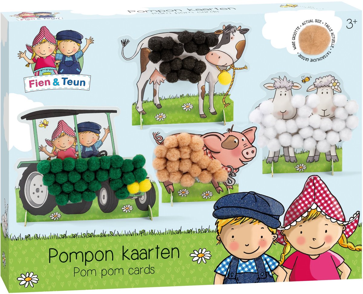 Laat je kleintje de boerderij tot leven brengen met de Fien & Teun Pompom Plakken set! Deze leuke activiteit is perfect voor de allerkleinsten en biedt eindeloos plezier. Versier de kaarten met Fien, Teun en hun boerderijdieren door zachte pompom bolletjes op de plakkende lijm te plaatsen. Het resultaat? Een kleurrijk kunstwerk van boerderijdieren dat je kindje zelf heeft gemaakt. De kaarten zijn gedeeltelijk voorzien van lijm... lees meer over dit product