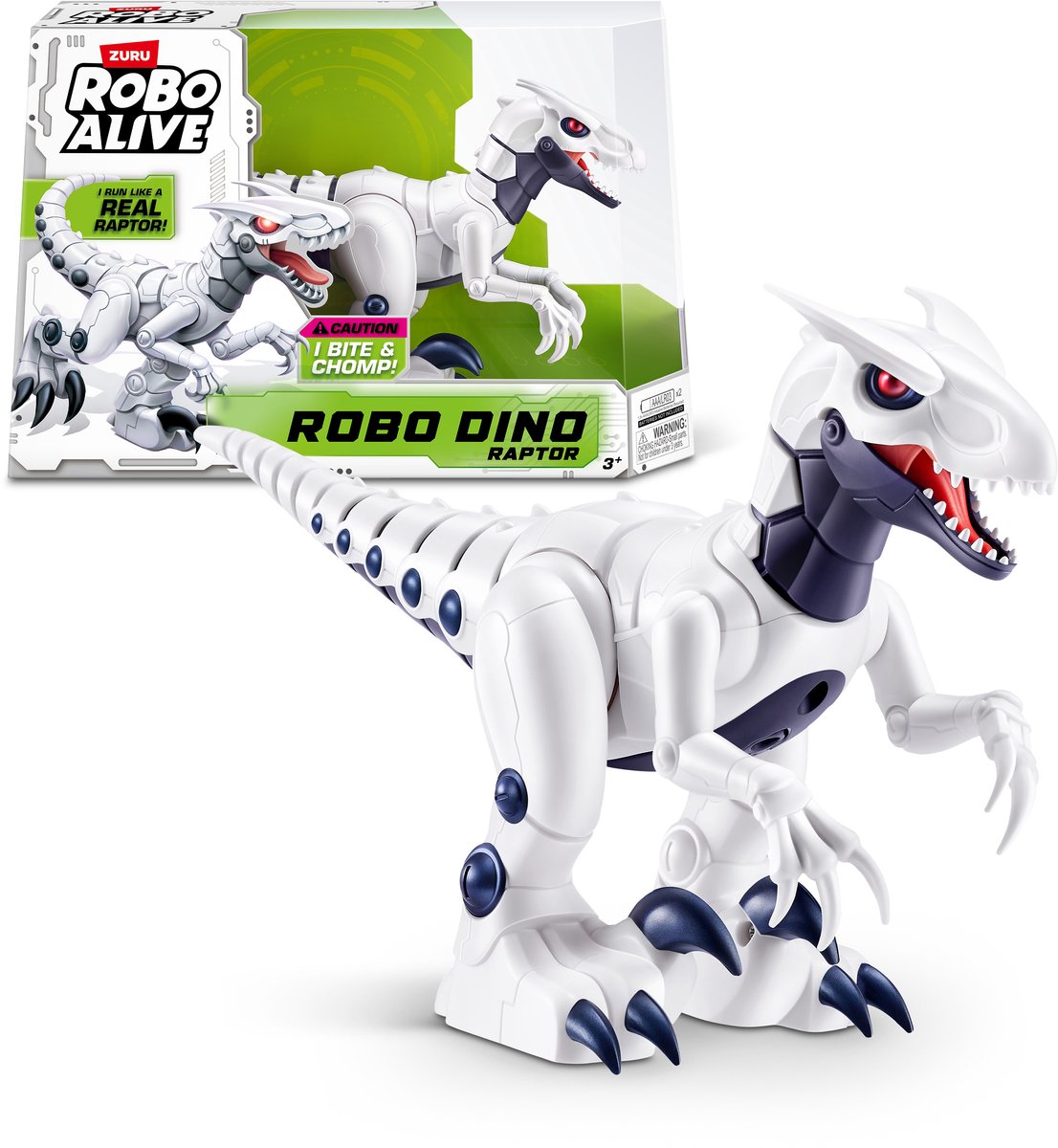 Wij presenteren de Robo Alive Robo Dino Raptor, het ultieme robotspeelgoed dat in raptor-stijl spannende prehistorische tijden tot leven brengt - het is Robo Alive! Kijk hoe hij met zijn realistische bewegingen sluipt en jaagt, net als een echte dinosaurus. Of hij nu stiekem sluipt of ineens vooruitspringt, dit dynamische roofdier fascineert je met ieder levendig detail. Voel de spanning van het verleden in het moderne speelgoed terwijl je de levensechte acties bestuurt. Perfect om familie of vrienden eens in de maling te nemen. Bedenk sluwe plannen en verras iedereen met je nieuwe robotmetgezel, voor spannende avonturen boordevol actie voor alle dinosaurusliefhebbers! Herleef het Jurassic-tijdperk vandaag!ROBO DINO: De ultieme speelrobot voor fans van robots, dino’s of allebei!HET LEEFT: Schakel hem in en kijk hoe dit eens uitgestorven dier tot leven komt!HET RENT: Kijk hoe hij rent, maar zorg dat hij je niet vangt!HET BIJT: Kijk hoe zijn tanden bijten en kauwen. Pas op je handen!HET KLAUWT: Het dier beweegt zijn klauwen als een echt prehistorisch roofdier!