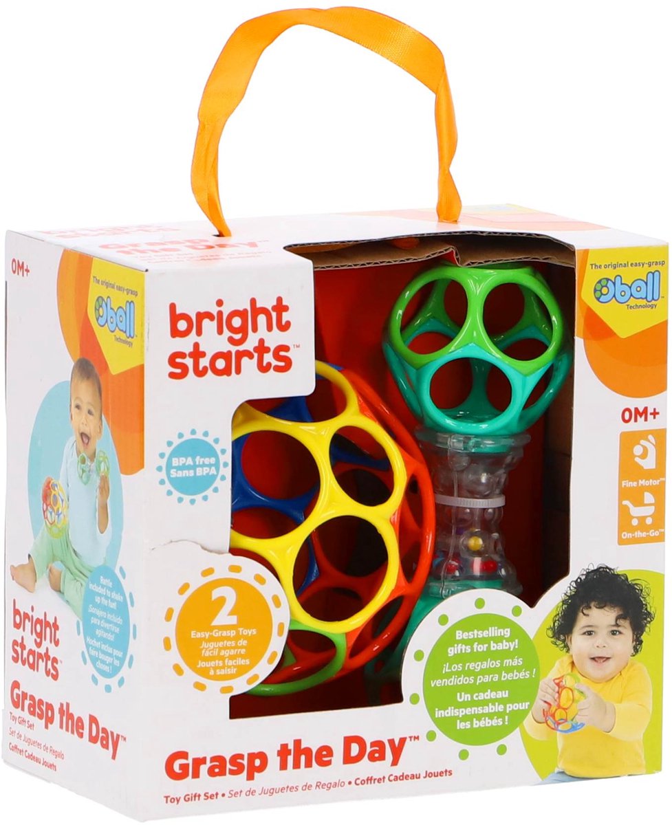 Deze giftset biedt niet alleen plezier, maar stimuleert ook de zintuigen van het kind. De verschillende vormen en kleuren van de Oball rammelaar zorgen voor een visuele en tactiele ervaring. Het ontwerp maakt het voor baby's gemakkelijk om te schudden, rollen en te grijpen.