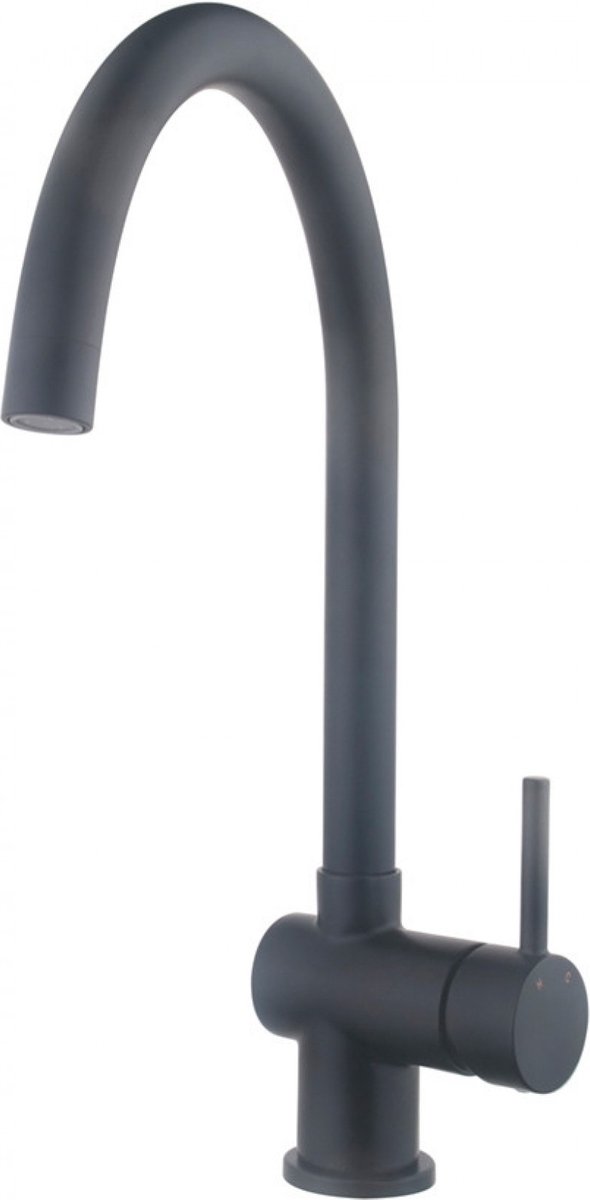 Deze keukenmengkraan is gemaakt van messing en mat zwart van kleur.