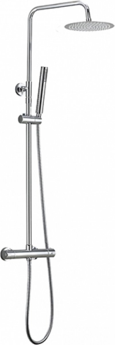 Sanifun douchesysteem Bibi ChroomHet Sanifun douchesysteem Bibi Chroom is gemaakt van verchroomde messing.De regendouche heeft een diamter van 200 mm en is voorzien van anti-kalk functie.De doucheslang is 1500 mm lang.De stang is verstelbaar tussen 830-1130 mm.De thermosatische kraan heeft een hart-afstand van 150 mm.Aansluiting is van het formaat 1/2. lees meer over dit product