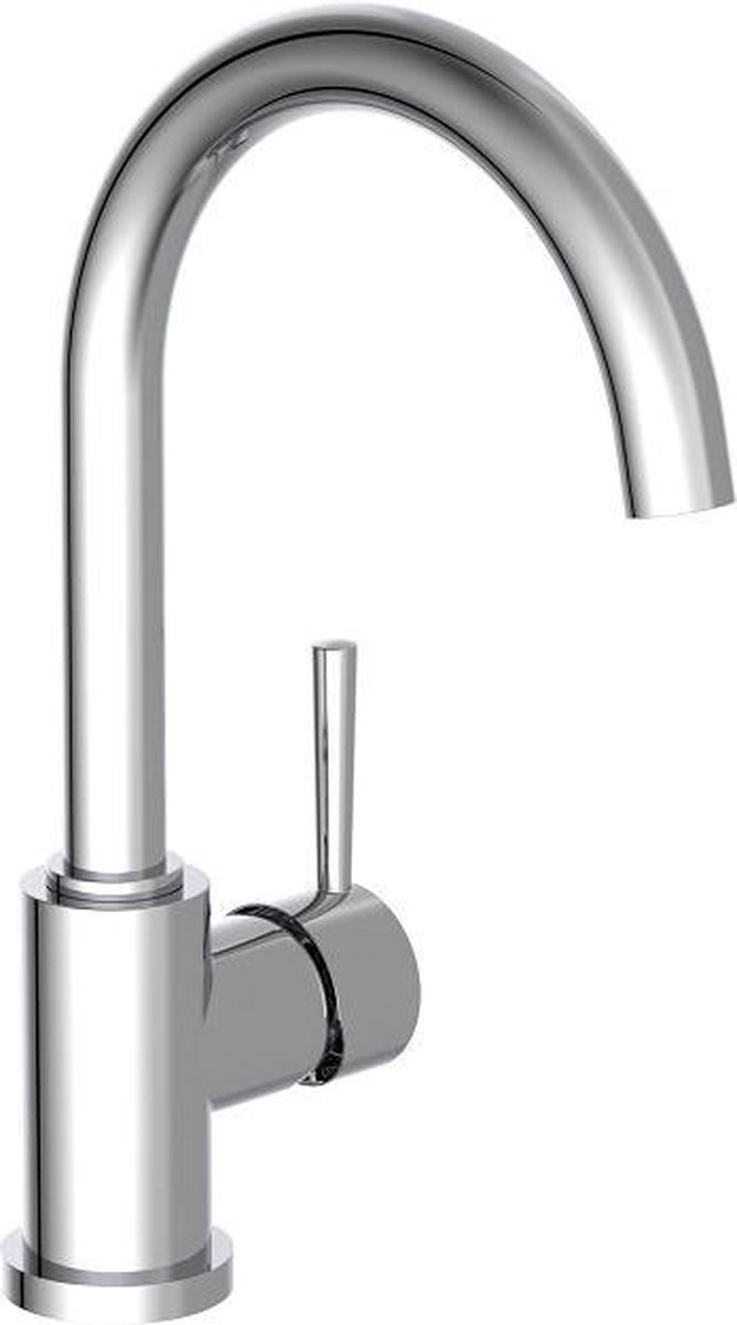 • elegante kraan met hoge ronde uitloop en draaibereik 150°