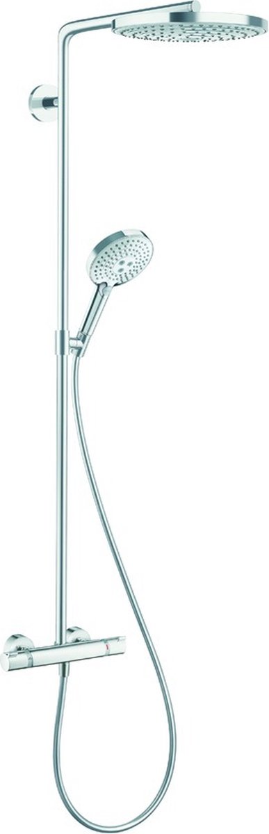 Het Hansgrohe douchesysteem Raindance Select S 240 bestaat uit: een thermostatische mengkraan, een handdouche, een slang en een hoofddouche met diameter 240 mm. lees meer over dit product