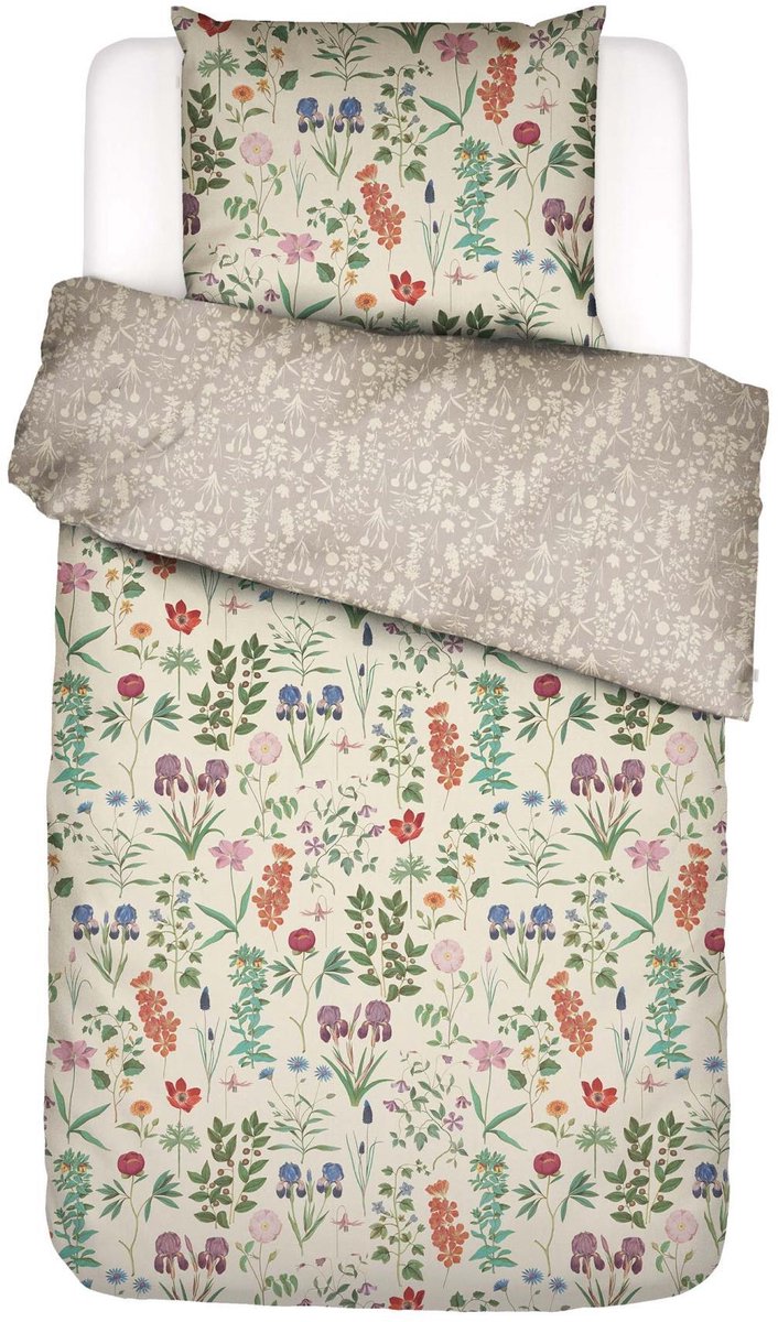 Deze betoverende print toont een rijke verscheidenheid aan bloemen. De kleuren variëren van zachtroze tot oranje en dieprood, met accenten van lichtblauw en violet op een subtiele ondergrondkleur. Elk bloemelement, van de wilde roos, anemoon, iris, clematis, pioenroos, blauwe strobloem, Oost-Indische kers, campanula, blauwe druifjes tot aan de goudsbloem is met zorg vormgegeven en draagt bij aan de levendige tuin. De goudsbloem is het kleinste bloemetje in het geheel maar wel de naamgever voor dit dessin. De groene bladeren weven door de compositie en bieden een fris contrast. Keer dekbedovertrek Marigold om voor een nieuwe beleving van de print in silhouet. Het ESSENZA dekbedovertrek, gemaakt van 100% biologisch katoen, is ademend en absorbeert vocht. Katoensatijn is zonder twijfel onze favoriete stof voor beddengoed. Het GOTS-certificaat garandeert biologisch geteeld katoen en een verantwoorde productie. Het is goed voor je huid, de aarde en onze werknemers. Bovendien voelt een dekbedovertrek van katoensatijn zachter en gladder dan regulier katoen door zijn speciale satijnweefsel, wat de stof een zachte glans geeft.
