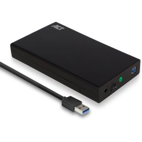 De AC1405 Schroefloze 3.5 inch SATA HDD Behuizing is de ideale oplossing voor het opslaan en delen van video's, foto's en andere bestanden. Het schroefloze ontwerp zorgt ervoor dat je heel eenvoudig een 3.5 inch HDD inbouwt. Met de USB 3.2 Gen1-aansluiting haal je een maximale doorvoersnelheid tot 5Gbps. USB 3.2 Gen1-ondersteuning De AC1405 heeft een snelle USB 3.2 Gen1-verbinding. Samen met de ondersteuning van UASP (USB Attached SCSI-Protocol) kun je data met een maximale snelheid tot 5Gbps overzetten. Een USB 3.2 Gen1-kabel wordt meegeleverd. Schroefloze montage Door het schroefloze ontwerp van de AC1405 is het installeren van een SATA harde schijf wel heel gemakkelijk. Open de behuizing, verbind de harde schijf met de SATA-connector en sluit vervolgens de behuizing. De AC1405 is nu klaar voor gebruik. Sluit de meegeleverde USB-kabel aan om de AC1405 met je notebook of pc te verbinden. Ook wordt de voedingsadapter meegeleverd die de harde schijf van stroom voorziet. Ook geschikt voor een USB 2.0-aansluiting Geen USB 3.2 Gen1 (USB 3.0)-poort op je laptop of pc? Sluit de ACT AC1405 gewoon aan op een USB 2.0-poort.