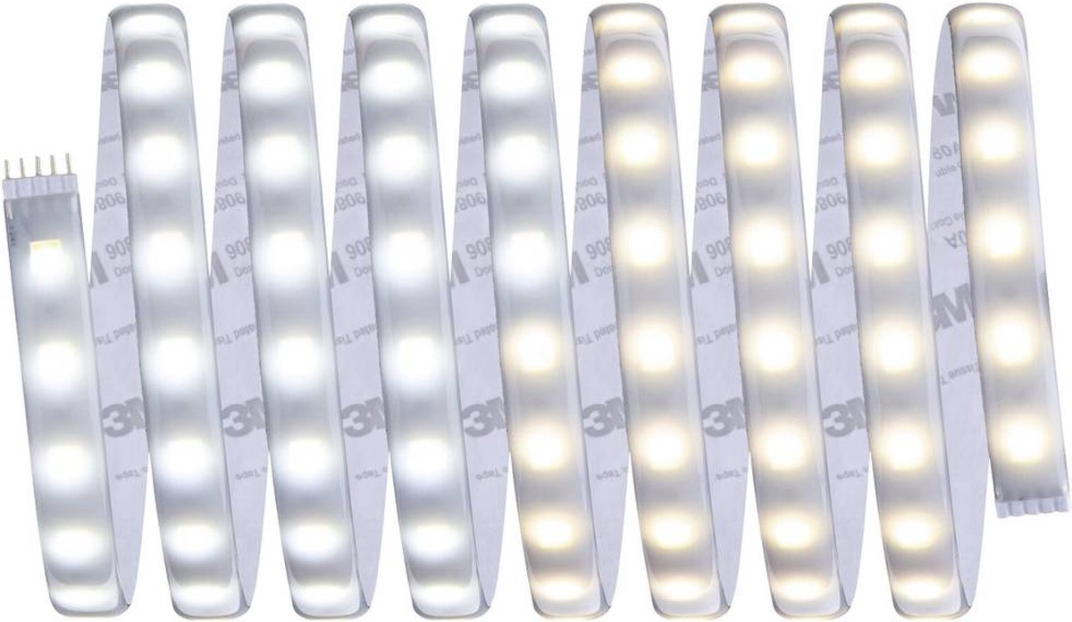 MaxLED-stripes zijn zo sterk dat ze zonder problemen kunnen worden gebruikt voor ruimteverlichting. Vooral in profielen zijn het echte blikvangers. Dankzij de intelligente witlichtbesturing tunable white kan de lichtkleur van de stripes naar wens worden gevarieerd. Van daglichtwit werklicht tot aan het warmwitte licht voor ontspanning is alles mogelijk. Afgezien van de stripes wordt de basisset met een geschikt voorschakelapparaat en een besturingseenheid met afstandsbediening geleverd. De basisset kan bovendien worden uitgebreid met extra stripes en verbindingen. Let bij de planning vooral op de maximale lengte aangegeven op de basisset. Deze mag niet worden overschreden.MaxLED Tunable White basisset gecoat 3 m 20 W met witlichtbesturing incl. afstandsbediening