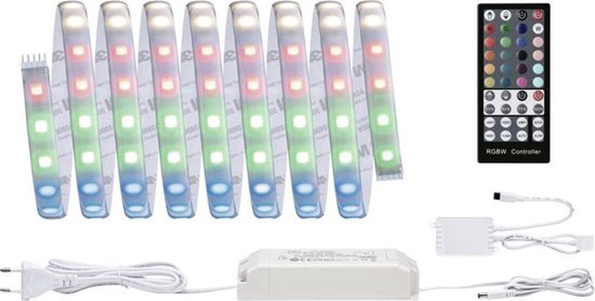 incl. afstandsbediening MaxLED-stripes zijn zo sterk dat ze zonder problemen kunnen worden gebruikt voor ruimteverlichting. Vooral in profielen zijn het echte blikvangers. Dankzij de sfeervolle kleurveranderingfunctie creëert u uw persoonlijke leefomgeving. Alles is mogelijk, van eenkleurige constante verlichting tot meerkleurige lichteffecten. Een witte diode (W) zorgt voor extra gezellig warmwit licht en maakt het mengen van rood, groen en blauw licht (RGB) tot wit licht overbodig. Afgezien van de stripes wordt de basisset met een geschikt voorschakelapparaat en een besturingseenheid met afstandsbediening geleverd. De basisset kan bovendien worden uitgebreid met extra stripes en verbindingen. Let bij de planning vooral op de maximale lengte aangegeven op de basisset. Deze mag niet worden overschreden.
