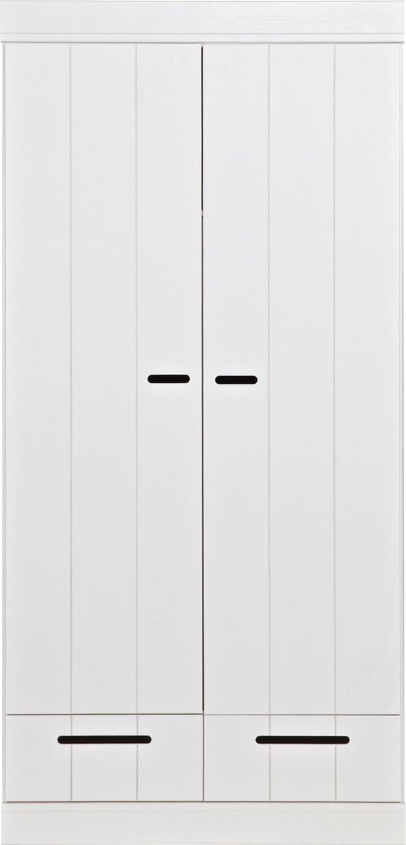 Uit de serie CONNECT: een stoere basic kast met strakke sokkel en koof Voorzien van strokendeuren met sleuven en 2 lades standaard, met stevige metalen ladegeleiders Met de CONNECT kasten kun je je eigen kastenwand bouwen! Past in iedere ruimte: hal, slaap- of kinderkamer Romp gemaakt van massief grenenhout Binnenzijde voorzien van spaanplaat/melamine interieur, praktisch met schoonmaken Kleur: wit, maar eenvoudig overschilder... lees meer over dit product