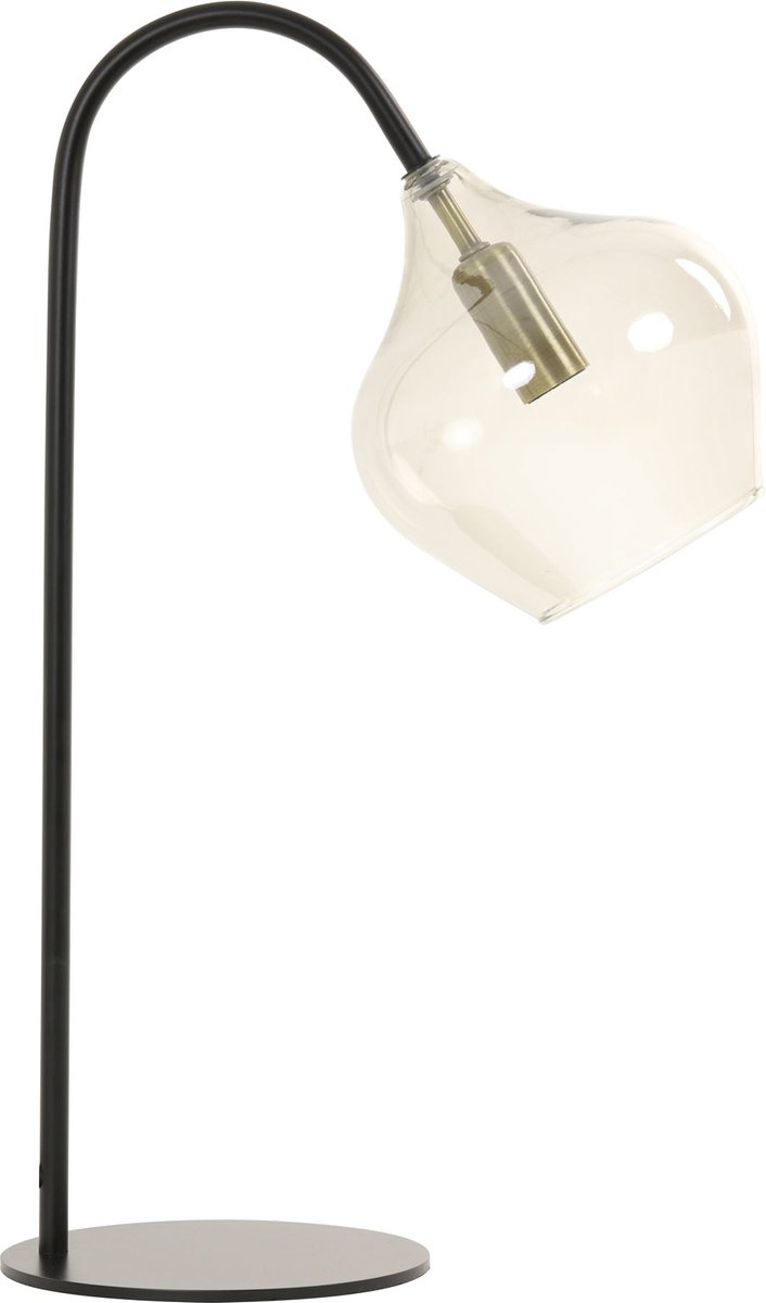 Zwarte tafellamp met een glazen lampenkap voor in een modern interieur Tafellamp Rakel heeft een stijlvolle uitstraling en valt op dankzij de glazen lampenkap. Het frame van de lamp is gemaakt van zwart metaal met een matte afwerking. Dit geeft de lamp in combinatie met de gouden fitting een luxe en moderne look. De smokey finish zorgt voor sfeervolle verlichting. Plaats deze tafellamp op je nachtkastje, dressoir of gebruik he... lees meer over dit product