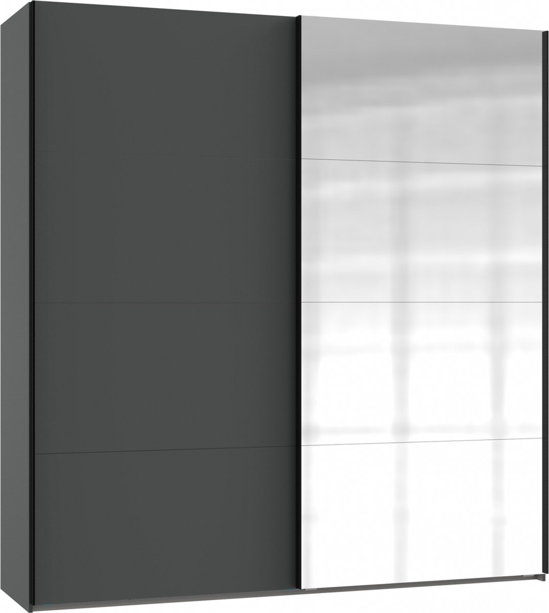 Kledingkast Aalst is een absolute aanrader voor iedereen die van een georganiseerd huis houdt. Deze kast biedt veel ruimte om kleding en linnengoed op te bergen. Door extra planken toe te voegen, kun je er nog meer in kwijt. De kast heeft een grafietgrijze kleur met zwarte greeplijsten en aan één kant een luxe spiegeldeur. Deze spiegeldeur is niet alleen handig om jezelf in te bewonderen, maar zorgt ook voor een ruimtelijk effect door het weerkaatsende licht. Met zijn eigentijdse uitstraling past kast Aalst perfect in elk interieur.