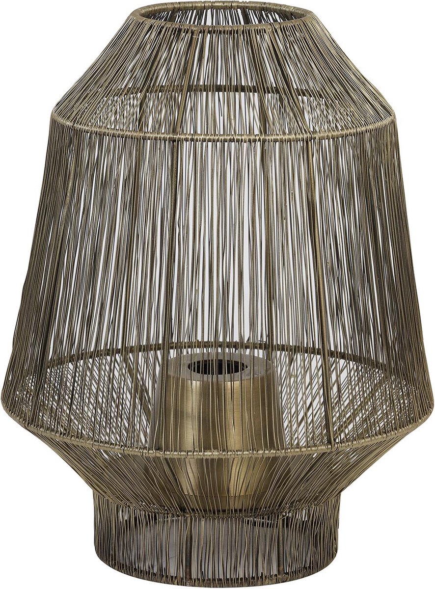 Handgemaakte tafellamp van antiek bronzen metaaldradenDeze prachtige Vitora tafellamp heeft een metalen design in een antiek bronzen kleur. Wanneer je de lamp aanzet ontstaat er door de metaaldraden een mooie tekening van patronen op de muur. De bovenkant van de lamp is open waardoor de lamp genoeg licht geeft. De gouden E27 fitting zorgt voor een extra detail en maakt naast dat de lamp handgemaakt is, uniek. De Vitora tafellamp heeft een afmeting van Ø30x38 cm.