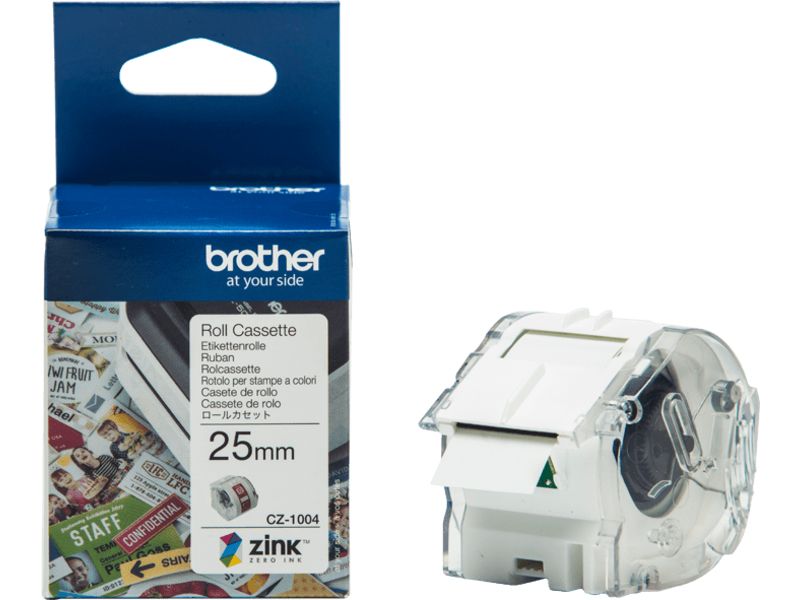 De originele Brother CZ-1004 kleurenetikettenrol van 25 mm breed is geschikt voor de Brother kleurenetikettenprinter VC-500W. Plaats de zelfklevende kettingrol en maak kleurgecoördineerde etiketten... lees meer over dit product