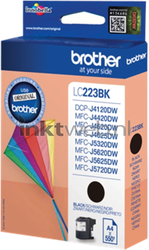 De Brother LC-223BK inktcartridge (zwart) is goed voor circa 550 pagina's A4 (conform ISO/IEC 24711) en ontwikkeld om met een constante kwaliteit scherpe afdrukken te kunnen maken. Ideaal voor belangrijke documenten zoals rapporten en verslagen. lees meer over dit product