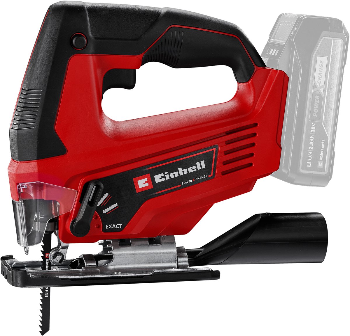 De Einhell Accu Decoupeerzaag TC-JS 18 Li Solo is flexibel en wordt gebruikt voor snel en nauwkeurig zagen. Dankzij de snoerloze vrijheid kan hij worden gebruikt ver weg van het dichtstbijzijnde stopcontact in huis, in de werkplaats of in de garage. Als lid van de PXC-systeemfamilie kunnen de oplaadbare accu's worden gebruikt in alle apparaten uit de serie. Voor nauwkeurig zagen is het apparaat zeer soepel in gebruik, en voor snel zagen is er een instelbare pendelwerking. De universele zaagbladhouder maakt het mogelijk het zaagblad zonder gereedschap te wisselen. Voor een optimaal zicht is er een stofafblaasfunctie. Het geïntegreerde kunststof glijelement beschermt gevoelige werkstukken. Het product wordt compleet geleverd met een KWB kwaliteitszaagblad voor hout. Dit product wordt geleverd zonder accu en oplader.