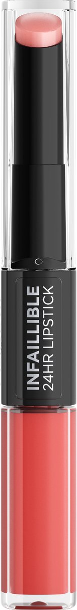 Ontdek de L’Oréal Paris Infaillible 24H Lipstick. In twee simpele stappen ben je met deze lipstick verzekerd van een intense lipkleur met een comfortabel gevoel gedurende de dag. Jouw lipstick blijft de hele dag goed zitten en geeft niet af. Ideaal! Hoe het werkt? Breng de Infaillible 24H Lipstick aan in 2 stappen: Stap 1: langhoudende kleur Stap 2: verzorgende balsem De Infaillible 24H lipstick is rijk gepigmenteerd waardoor deze lipstick zorgt voor een mooie kleurimpact op jouw lippen. Met de handige applicator breng je de lipstick gemakkelijk precies aan. De balsem is verrijkt met hyaluronzuur voor een comfortabel gevoel op de lippen, verzorging en glans. Tip: gebruik de balsem gedurende de dag om glans toe te voegen en je lippen te verzorgen. *Instrumentele test, 61 personen