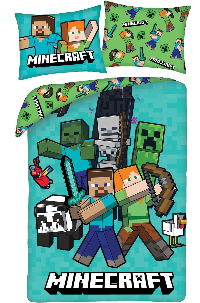 Het is fijn slapen onder dit polyester Minecraft dekbedovertrek. Droom jij ook dagelijks over dit toffe spel? En ben jij niet bang voor Creepers? Dan is dit dekbedovertrek een onmisbaar item voor jouw slaapkamer! Voorzien van een stoere dubbelzijdige bedrukking heb jij een echte blikvanger te pakken. De set wordt compleet gemaakt door het extra grote kussensloop. Een waanzinnig cadeau idee voor elke game-fanaat voor een verjaa... lees meer over dit product