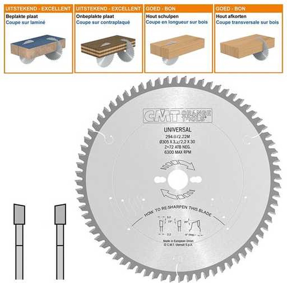 Afkortzaag Belangrijkste eigenschappen HW negatief 305x30x3,2 Z72 Massieve houtsoorten … lees meer over dit product