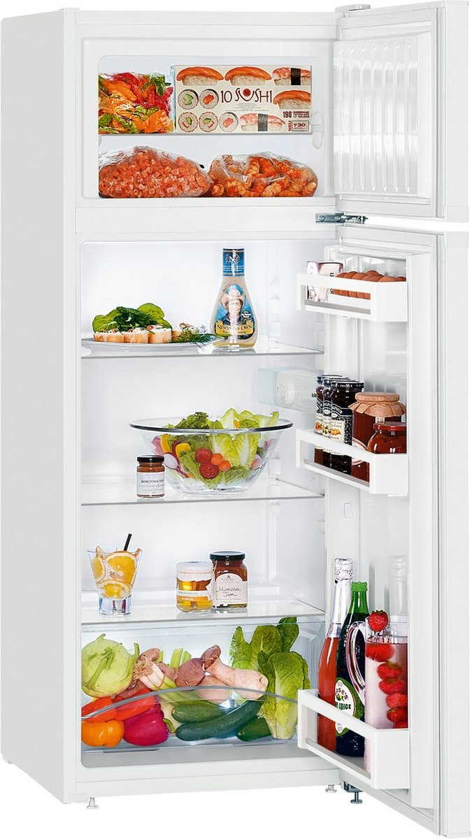 De Liebherr CTe 2531 koel-vries combinatie van 55 cm breed combineert een compact formaat met slimme en praktische functies. Ondanks zijn bescheiden afmetingen biedt dit model verrassend veel gebruiksgemak. In het koelgedeelte zorgen stevige GlassLine draagplateaus, die elk tot 30 kg kunnen dragen, voor een overzichtelijke indeling van je etenswaren. De plateaus zijn verstelbaar, zodat je de indeling eenvoudig kunt aanpassen aan je behoeften. Onderin vind je een ruime, kastbrede groentelade waarin groenten en fruit langer vers blijven. De heldere LED-verlichting zorgt ervoor dat je altijd goed zicht hebt op de inhoud. Het vriesvak is voorzien van een uitneembaar glasplateau en is eenvoudig en snel te ontdooien.