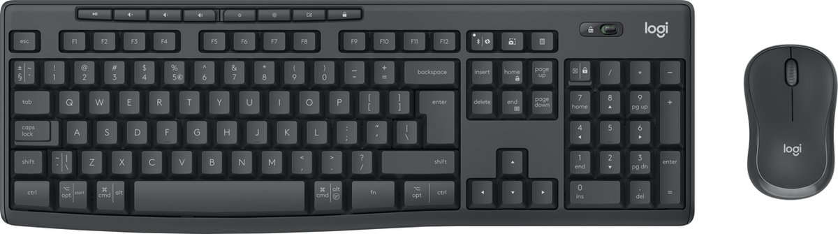Logitech MK370 Combo for Business. Toetsenbord formaat: Volledige grootte (100%). Stijl toetsenbord: Recht. Aansluiting: RF-draadloos + Bluetooth, Toetsenbord toetsschakelaar: Membraan keyswitch, Toetsenbordindeling: QWERTY, Aantal toetsen, toetsenbord: 112, Aanbevolen gebruik: Kantoor. Kleur van het product: Grafiet. Inclusief muis