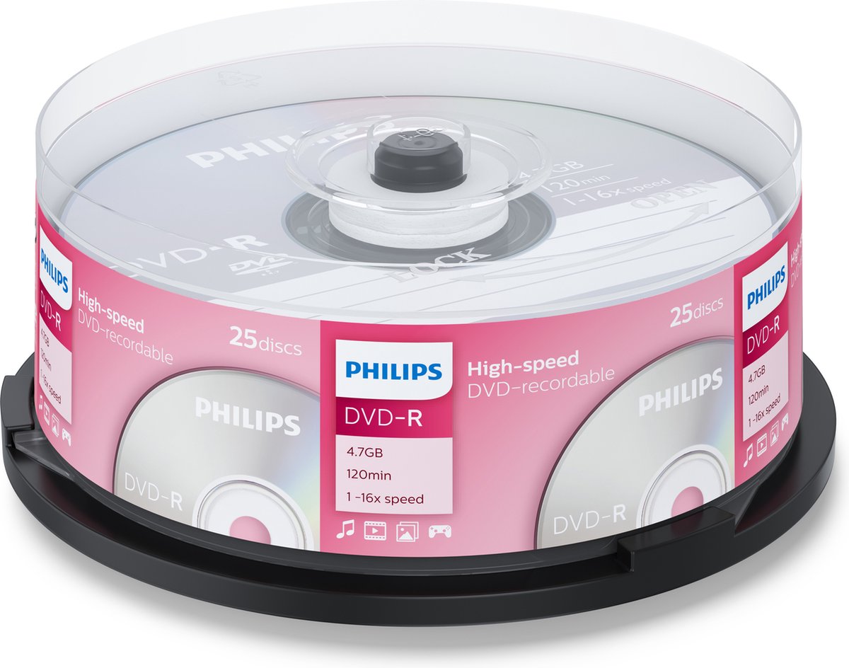 Philips - uitvinder van de CD / DVD-technologie - heeft een zeer groot aanbod opneembare DVD+R media. Geschikt voor het branden op een snelheid tot 16x.