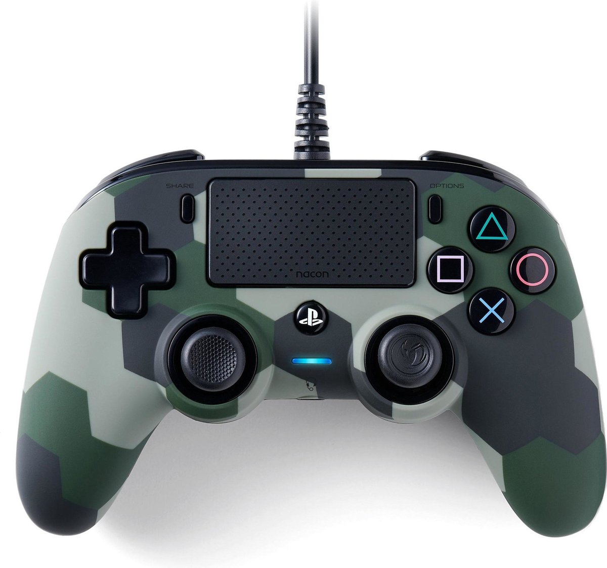 De bedrade Compact Controller voor de PS4 van Nacon beschikt over alle knoppen die je als gamer zo gewend bent op je PlayStation 4. De analoge sticks, Share-, Options- en PS-knoppen: ze zijn allemaal aanwezig op deze stoere PlayStation 4 controller van Nacon.