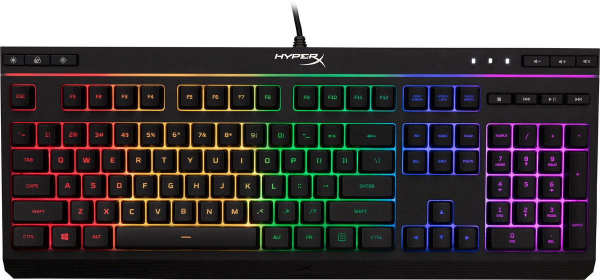 Met zijn authentieke HyperX lichtbalk en coole, stijlvolle RGB-verlichtingseffecten is de HyperX Alloy Core RGB ideaal voor gamers die de stijl en prestaties van hun toetsenbord willen verbeteren zonder een forse uitgave te hoeven te doen. Met zes verschillende verlichtingseffecten en drie helderheidsniveaus biedt het een goed evenwicht tussen vernuft en budget. De Alloy Core RGB is afgewerkt met een duurzaam, versterkt plastic frame en is gebouwd voor stabiliteit en betrouwbaarheid voor gamers die een toetsenbord willen dat nog lang mee zal gaan. De soft-touch toetsen geven een tactiel gevoel, zijn stil en voorzien van een anti-ghosting functionaliteit van gaming-niveau en key rollover. Het is morsbestendig en bestand tegen 120 ml gemorste vloeistof zodat ongevallen met drank geen einde maken aan je game. De speciale mediabediening en sneltoetsen voor verlichting en Game-modus geven je controle binnen handbereik. Je toetsenbord kan worden vergrendeld zonder je hele systeem in stand-by te hoeven zetten. De Alloy Core RGB is stijlvol, bevat talloze mogelijkheden en is duurzaam, waardoor het een geweldig veelzijdig multimedia toetsenbord voor gamers is.