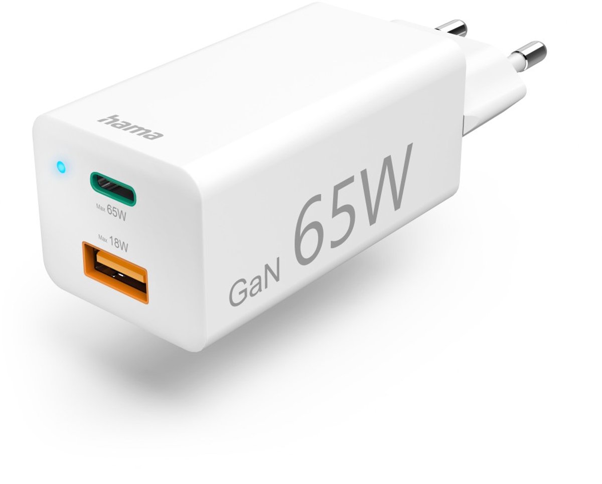 De Hama 65W GaN snellader combineert hoge efficiëntie met compact formaat. USB-C PD levert laptops, tablets en phones snelle power; USB-A QC laadt je tweede device vlot mee. Ideaal voor thuis en onderweg. Hama-veiligheid tegen over- en kortsluiting.- Tot 65W GaN-power
