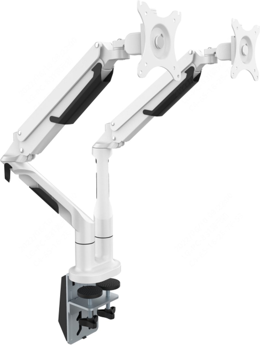 Twee volledig instelbare monitorarmen met een extra groot bereik van 62 cm.Met stijlvol minimalistisch design. Traploos instelbare gasveer Geschikt voor schermen van 17" tot 32" met VESA 75x75mm en 100x100mm Gewichtscapaciteit: 2kg - 9kg Wordt geleverd met bureauklem en een bladdoorvoer set Eenvoudige montage door ‘Quick Release’ houder Ingebouwd kabelmanagement Roteer het beeldscherm moeiteloos tussen horizontale of vertica... lees meer over dit product
