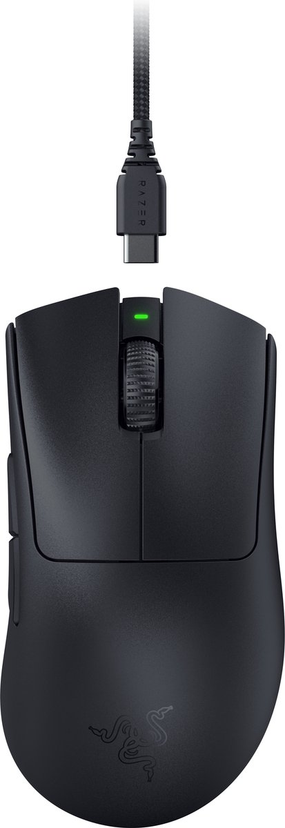 De Razer DeathAdder legende blijft doorgaan! De Razer DeathAdder V3 Pro is een gaming muis ontworpen met kenmerkende dodelijke rondingen en strakke lijnen. De DeathAdder V3 Pro is uitgerust met een Focus Pro 30K Optical Sensor voor een grotere nauwkeurigheid en is instelbaar tot 30.000 dpi. De Razer DeathAdder V3 Pro beschikt over vijf programmeerbare knoppen met 3e gen. Razer Optical Mouse Switches en een on-board geheugen voor één profiel voor al je instellingen: waaronder dpi-instellingen, knopconfiguraties en meer. De ultrasnelle en duurzame Razer switches leveren de hoge reactietijd en precisie die je als speler wilt hebben. Voor een grotere flexibiliteit is de DeathAdder V3 Pro voorzien van een Razer Speedflex kabel, voor een verbinding met kabel en ondersteunt het Razer HyperSpeed Wireless voor een draadloze verbinding.