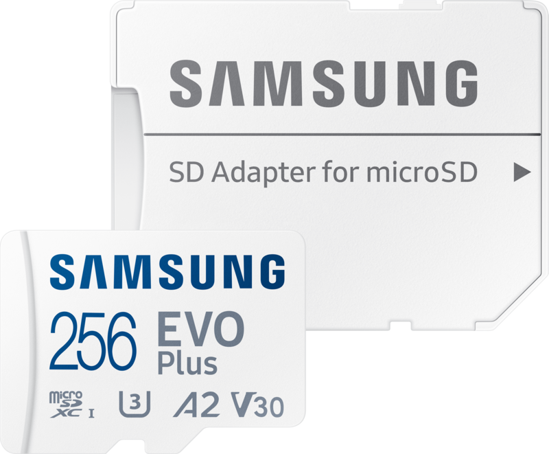 De SAMSUNG EVO Plus microSDXC (2024) met een enorme opslagcapaciteit van 256 GB biedt ruimte aan allerlei media, games en apps op je tablet. Razendsnelle en betrouwbare overdrachten, allemaal in een strak, nieuw design. Met zoveel capaciteit maak je eindeloos gebruik van je telefoon. Nooit meer zorgen of je wel genoeg geheugen hebt, want er is ruimte genoeg voor al je herinneringen. Bijzonder veelzijdig Wees voorbereid op wat het leven je brengt. De EVO Plus is zeer veelzijdig en compatibel met bijna alles, van Android-smartphones en -tablets tot draagbare gameconsoles en laptops. Je kunt je grotere bestanden dus eenvoudig en met een gerust hart opslaan en beheren. Snel en heel gemakkelijk Draagbaar zonder concessies te doen aan de prestaties. EVO Plus is voorzien van supersnelle U3, klasse 10-geclassificeerde overdrachtssnelheden van maximaal 160 MB/s, en is daarmee je ideale partner in crime. Dankzij de A2-classificatie voor app-prestaties en V30-classificatie voor video's werken al je apps optimaal en worden je 4K UHD-video's in briljante details weergegeven. Je bent volledig beschermd Zesvoudige bescherming. De EVO Plus biedt bescherming tegen water, temperatuur, röntgenstraling, magneten, vallen, en slijtage tijdens je grootste avonturen. Je onvergetelijke herinneringen verdienen een betrouwbare opslag.