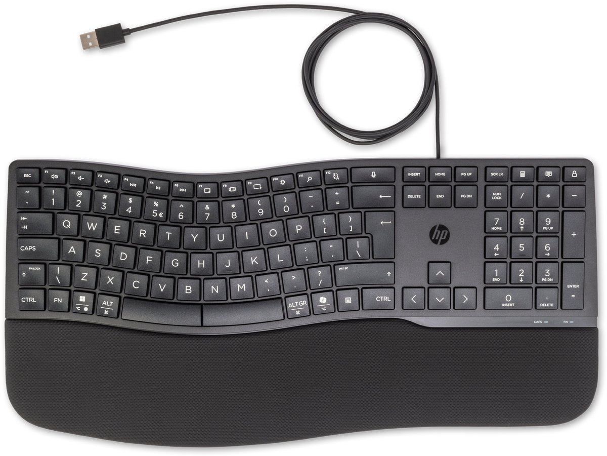 Dit is de HP 480 Comfort (QWERTY). Een nieuwe dimensie van comfort en technologie. Ervaar moeiteloos typcomfort met het HP 480 Comfort Wired toetsenbord. Met programmeerbare toetsen, instelbare hoek en mogelijkheden voor meerdere besturingssystemen. Comfort binnen handbereik Of je nu blogt of codeert, het HP 480 Comfort Wired toetsenbord is ontworpen voor natuurlijk comfort en productiviteit de hele dag door. De vertrouwde ind... lees meer over dit product
