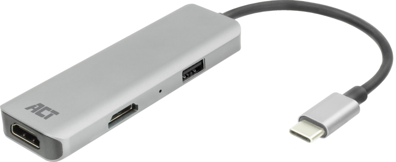 Breid je display uit naar twee extra HDMI monitoren met de AC7013 USB-C 4K multiport adapter met MST ondersteuning. Met deze adapter kloon je of breid je de desktop uit met 2 extra HDMI monitoren. De multiport adapter wordt via USB gevoed en voegt een USB-A datapoort toe aan je device. De AC7013 is de meest draagbare oplossing voor het aansluiten van één of twee extra beeldschermen. Vaak is je laptop thuis draadloos verbonden met het internet, dus hoef je alleen maar je schermen, muis en toetsenbord aan te sluiten. Sluit de schermen en de ontvanger van de draadloze muis en toetsenbord set aan en je bent klaar om te werken. Uitbreiden naar twee 4K HDMI monitoren De multiport adapter ondersteunt MST (Multi-Stream Transport). Dit zorgt ervoor dat de desktop kan worden uitgebreid met twee HDMI monitoren. Sluit een enkele monitor aan met een maximale resolutie van 4K @ 60Hz of twee monitoren met een maximale resolutie van 4K @ 30Hz. Geen externe voeding nodig Deze stevige aluminium adapter wordt gevoed via USB. Er is geen externe voeding nodig. Zorg ervoor dat de USB-C poort van de notebook DP Alt Mode ondersteunt. Sluit USB-A randapparatuur aan De AC7013 heeft een USB-A 3.0 (5Gbps) poort voor het aansluiten van randapparatuur zoals bijvoorbeeld een toetsenbord of muis.