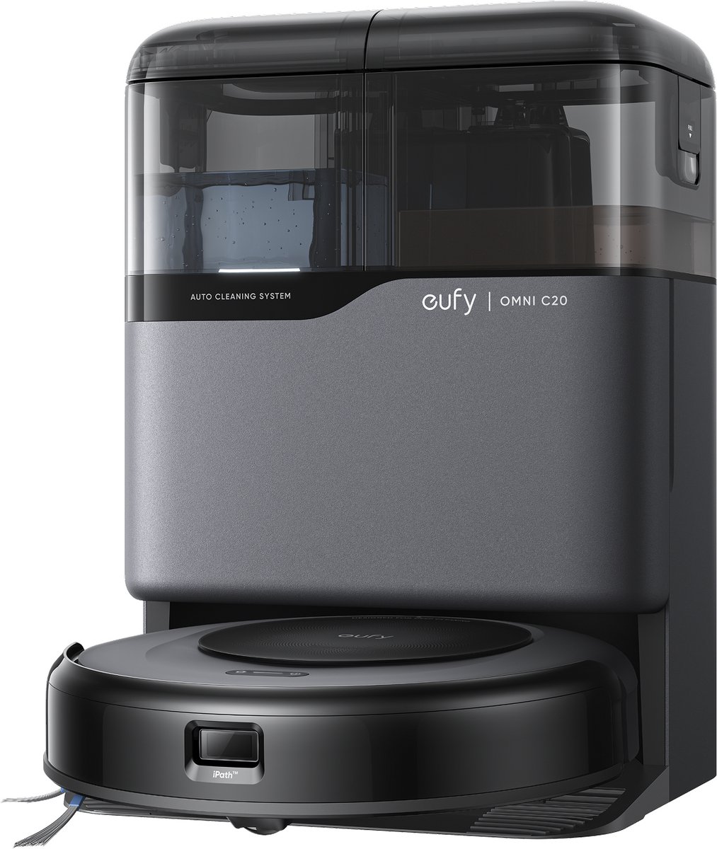 - All-in-One Station: de Omni C20 reinigt volledig automatisch met functies zoals leegmaken, wassen, drogen en vullen met water. Het station droogt de dweilpads met binnenlucht en heeft transparante watertanks voor eenvoudige bewaking. Zo wordt het onderhoud moeiteloos.