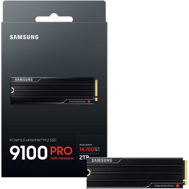 De 9100 PRO Heatsink SSD van Samsung heeft een opslagcapaciteit van 2 TB. Deze M.2 SSD heeft een leessnelheid van 14.700 MB/sec en een schrijfsnelheid van 13.400 MB/sec. De SSD is daarnaast voorzien van een M.2 (2280) bouwvorm met een PCIe Gen 5.0 x4, NVMe 2.0 interface. De 9100 PRO serie M.2 SSD van Samsung combineert Samsung V-NAND TLC met de Samsung controller voor verbluffende lees/schrijfsnelheden om zo een nieuwe standaard te creëren voor high-end gaming en 4K & 3D video editing.