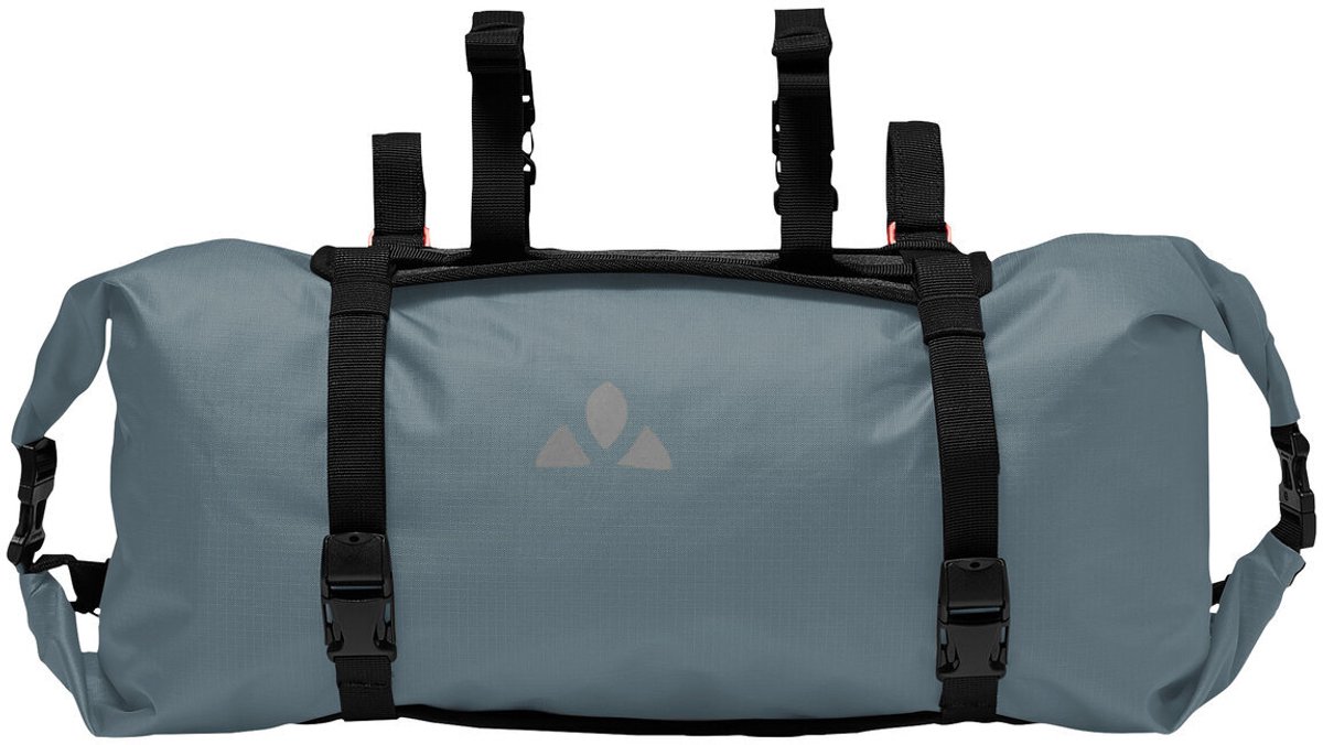 Voor avontuurliefhebbers! Wie ervan houdt om met de fiets onderweg te zijn en voor de overnachting al het noodzakelijke bij zich te hebben, is met deze waterdicht comprimeerbare stuurtas op de juiste weg. De packsack met 13 l is van beide zijden toegankelijk en middels wikkelsluiting waterdicht comprimeerbaar en is uitstekend geschikt voor lichte bepakking en een slaapzak. Met packriemen aan de bovenkant kan extra bagage en zelfs een tent aan de buitenkant worden bevestigd. De bevestiging van de packsack past op alle mountainbikesturen en is met diens breedte van 30cm ook compatibel met alle gangbare gravel- of racefietssturen. Zijn eenvoudige montage vindt plaats via het stuur en de balhoofdbuis. Door de praktische afstandshouders en de in de breedte verstelbare bevestigingen wordt er altijd voldoende vrijheid voor de rem- en, schakelkabels gegarandeerd. Extra, gekleurde horizontale klittenband compressiebanden, evenals een dubbele verticale band, houden de tas schokvrij op zijn plaats op elke onverharde weg. Praktisch feature is de draagriem waarmee de Trailfront gemakkelijk en casual over de schouder kan worden gedragen. Deze stuurtas is niet alleen praktische metgezel voor bikepacking. Hij doet ook heel veel werk op het gebied van milieubescherming, want zowel de bevestigingen als de packsack bestaan voor 100% uit gerecyclede materialen.